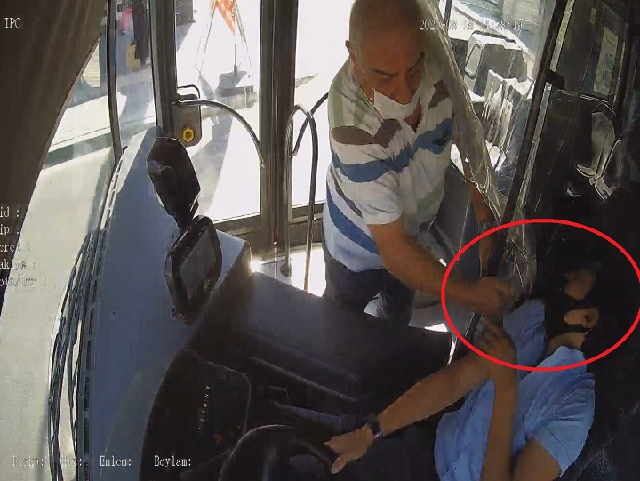 Bursa’da halk otobüsü şoförü İsmail Alay, maskeyi çenesine taktığı için uyardığı yolcunun saldırısına uğradı. O anlar, otobüsün güvenlik kameralarına yansıdı.