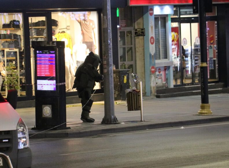 Sivas’ın en işlek caddesinde çöp kutusuna bırakılan kadın çantası paniğe neden oldu.