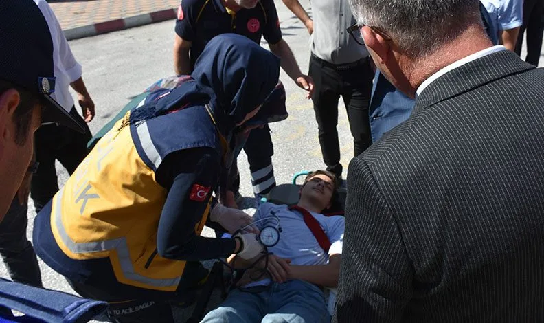 Sıcağa dayanamayan öğrenci, tören alanında bayıldı