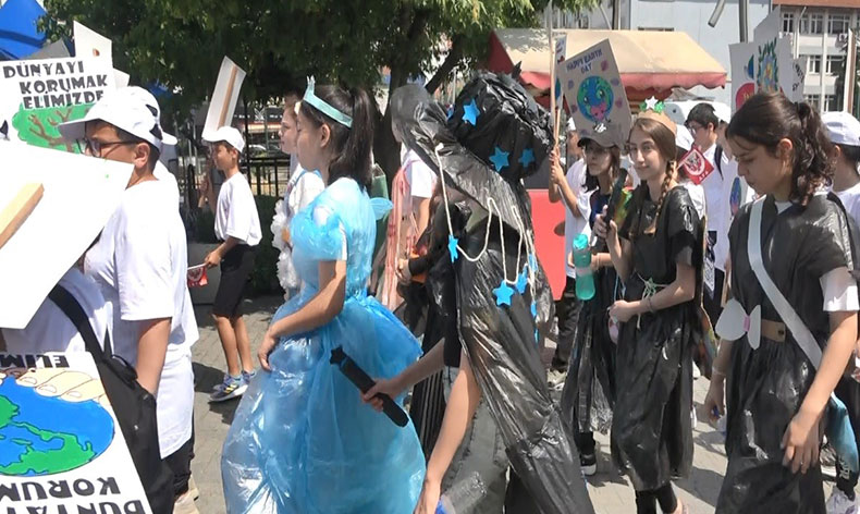 Türkiye’de 5-7 Haziran tarihleri arasında kutlanan Çevre Haftası etkinlikleri, Bartın’da gerçekleştirilen kortej yürüyüşü ile başladı. Bartın Belediyesi Sosyal Tesisleri önünde toplanan öğrencilerin yürüyüşüne öğretmenleri ve il protokolü de eşlik etti. Bando takımının en önde yer aldığı yürüyüşte öğrenciler ellerinde pankartlar ve giydikleri kıyafetlerle çevre duyarlılığına dikkat çekti. Bir grup öğrenci ise kostüm ve kıyafete dönüştürerek giydikleri çöp poşetleri ile kortejde yerini aldı. Sıcağa rağmen giydikleri çöp poşetleri ile yürüyen öğrenciler, “Üzerimizdeki kıyafet ve kostümleri atıkların geri dönüşü ile ürettik. Çevreye sahip çıkmak için farkındalık kazandırmak için bu kıyafetleri ürettik. Hayal gücümüzün ve öğretmenlerimizin de desteği ile atıkları çöpe atmak yerine geri dönüştürebileceğimizi göstermek istedik’’ diye konuştu.