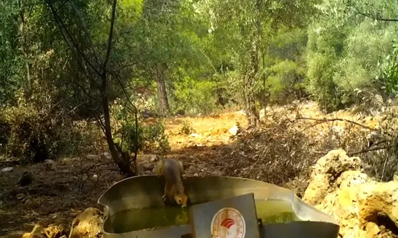 Antalya’da yapılan bu ortak çalışmada Ormanlık alana yerleştirilen bir yalaktan su içen yaban hayvanları fotokapana yansıdı. Görüntülerde, tavşan, sincap, kunduz ve vaşak gibi hayvanların yalak başına gelip su içme anları yer aldı.