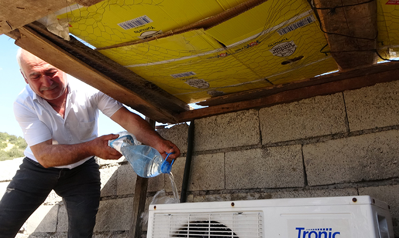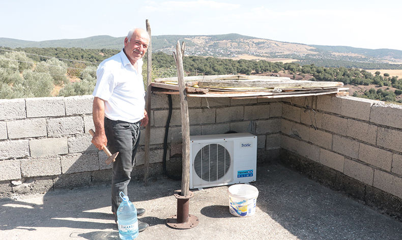 Mutlu olduğunu söyleyen Çiftçioğlu, “Sıcaktan boğuldum klima aldım. Ancak aşırı sıcak günlerde klima çalışmadı. Ne yapacağımı bilemedim. Klima motorunun üzerine önce soğuk su döktüm. Şimdi de güneşten korunması için gölgelik yaptım. Gölgeyi görüp suyu da dökünce klimamız çalışıyor. Yoksa sıcaktan boğulacağım. Ben daha böyle sıcak görmedim” dedi.