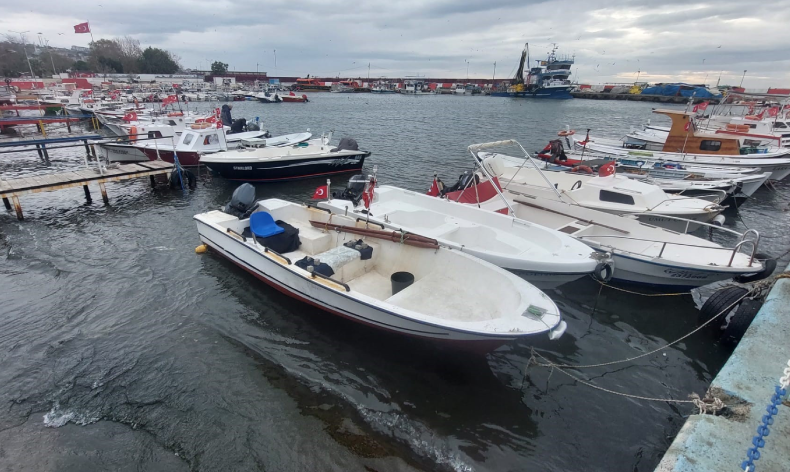 Fırtına sebebiyle dev dalgalar kıyıları dövmeye devam ediyor. Fırtınayla birlikte deniz adeta çalkalanırken, limanda rıhtıma bağlanan teknelerde dans etti.