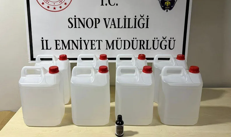 Sinop İl Emniyet Müdürlüğü Kaçakçılık ve Organize Suçlarla Mücadele Şube Müdürlüğü ekipleri tarafından yürütülen çalışmalar kapsamında, Erfelek ilçesinde yapılan aramalarda 40 litre etil alkol, 1 adet 50 ml alkol aroması ve 1 adet alkol test kiti ele geçirildi.