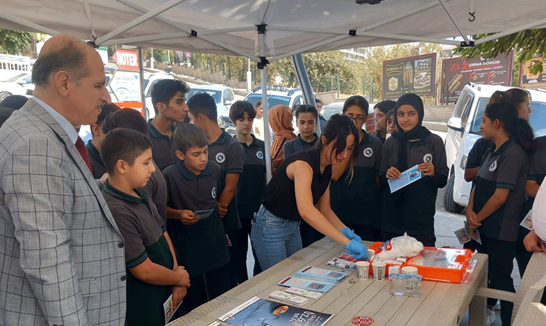 Şırnak İl Milli Eğitim Müdürlüğünde görevli 1 hemşire ve 1 diyetisyen, öğrencilere şeker hastalığını uygulamalı şekilde anlatarak test yaptı.
