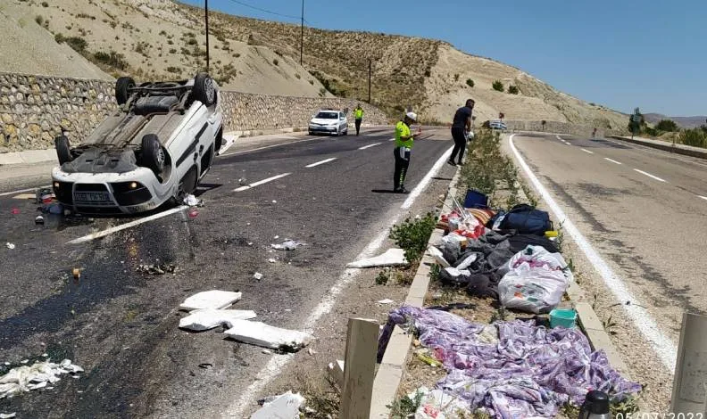 Sivas’ın Gürün ilçesi Bahçeiçi köyü yakınlarında Kayseri- Malatya karayolunda seyreden hafif ticari araç, sürücüsünün direksiyon hâkimiyetini kaybetmesi sonucu kaşı şeride geçerek takla attı. Araçta bulunan toplamda 5 kişi ağır yaralandı.