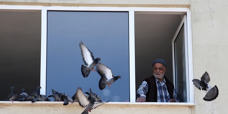 İçişleri Bakanlığı genelgesi ile Türkiye’de 30 büyükşehir ve Zonguldak’ta ilan edilen sokağa çıkma yasağının ikinci gününde Bursa caddeleri, meydanları ve sahillerinde sessizlik sürüyor. Mudanya ilçesi Güzelyalı sahilinde yaşayan 78 yaşındaki Hasan Menteş, her gün sahilde yem verdiği güvercinlerin aç kalmaması için evinin pencere kenarına yem bırakıyor.