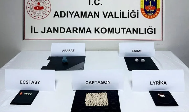 Adıyaman İl Jandarma Komutanlığı unsurlarınca yapılan çalışmalar sonucunda durumundan şüphelenilen M.C.A. isimli şahsın üzerinde ve aracında yapılan aramada 180 adet captagon sentetik uyuşturucu hap, 5 adet lyrica uyuşturucu hap, 5 adet ecstacy uyuşturucu hap ve 1 adet uyuşturucu kullanma aparatı ele geçirildi. Uyuşturucu haplar muhafaza altına alınırken şahıs ise gözaltına alınarak jandarma komutanlığına götürüldü.
