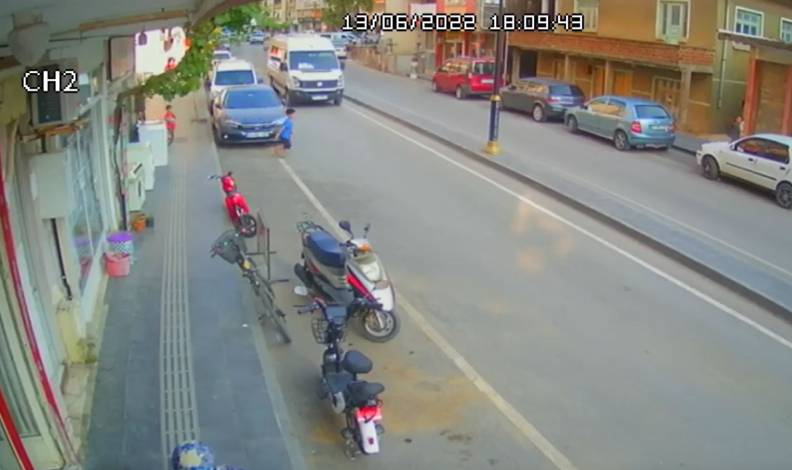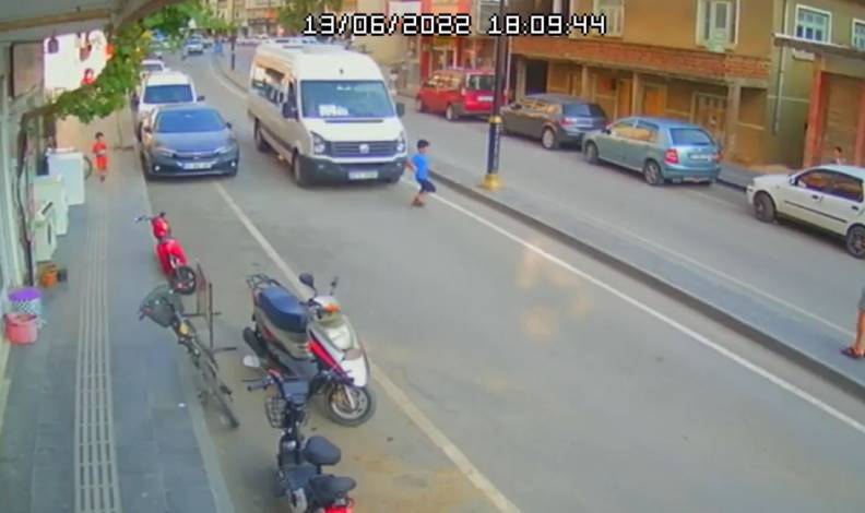 Antalya’nın Serik ilçesine bağlı Kökez Mahallesi Mimar Adil Aydın Caddesi’nde, güvenlik kamerası tarafından kaydedilen görüntüde ismi öğrenilemeyen 7-8 yaşlarındaki çocuk, bir anda yola fırladı.