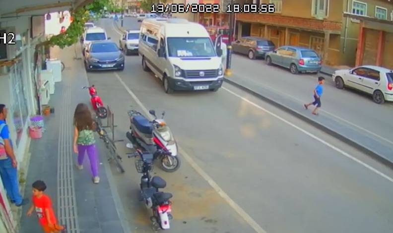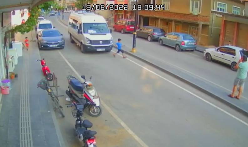 Tam bu sırada çocuğu fark eden minibüs sürücüsü frene basarak aniden durdu. Sürücünün refleksiyle minibüs altında kalmaktan kıl payı kurtulan çocuk, ne olduğunu anlayamadı.