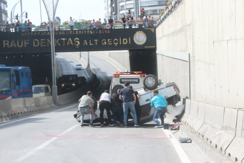 Afyonkarahisar’da kontrolden çıkarak orta refüje çarpıp takla atan araçta ki kişi yaralanırken, kaza sonrası devrilen otomobili ise yoldan geçen vatandaşlar düzeltti.