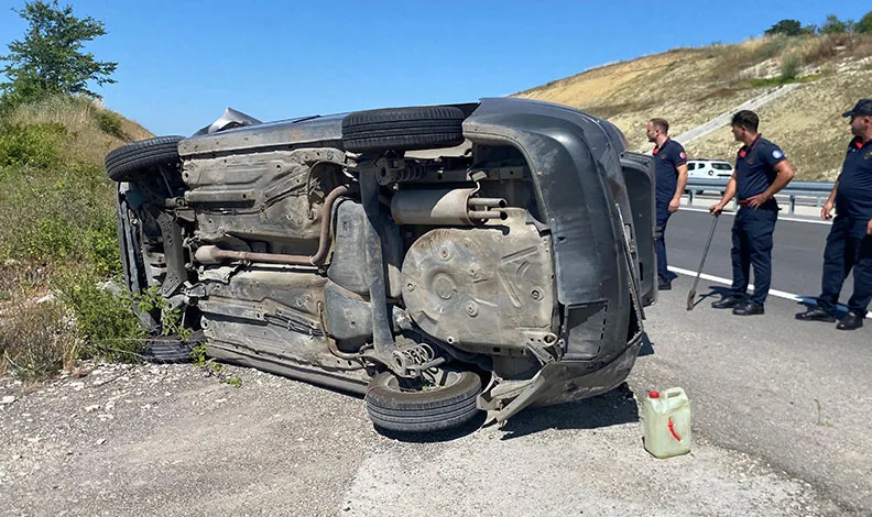 Takla atan otomobilden yara almadan kurtuldular