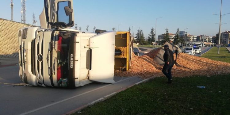 Kontrolden çıkan tır dorsesiyle birlikte yan yatırdı. Kazada sürücü yaralanmazken talaşlar yola saçıldı. Kaza yerine gelen trafik ekipleri önlem alarak yolu trafiğe kapattı. Yan yatan tır kaza yerine gelen vinç yardımıyla kaza yerinden kaldırıldı. Kapanan yol tekrar trafiğe açıldı. Kazayla ilgili soruşturma ise sürdürülüyor.