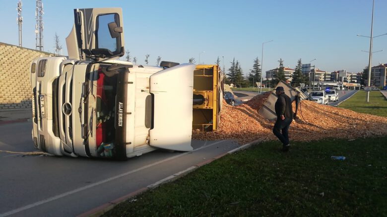 Kontrolden çıkan tır dorsesiyle birlikte yan yatırdı. Kazada sürücü yaralanmazken talaşlar yola saçıldı. Kaza yerine gelen trafik ekipleri önlem alarak yolu trafiğe kapattı. Yan yatan tır kaza yerine gelen vinç yardımıyla kaza yerinden kaldırıldı. Kapanan yol tekrar trafiğe açıldı. Kazayla ilgili soruşturma ise sürdürülüyor.