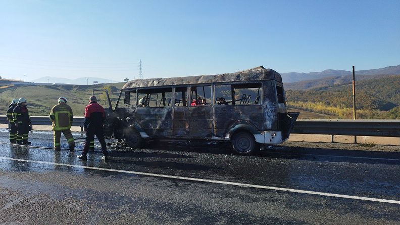 Yangını fark eden minibüs sürücüsü aracı emniyet şeridine çekerek araçtan indi. Alevlerin bir anda büyüdüğü minibüs alev topuna dönerken yangına çevreden geçen araçlardaki yangın tüpleri ile müdahale edildi.