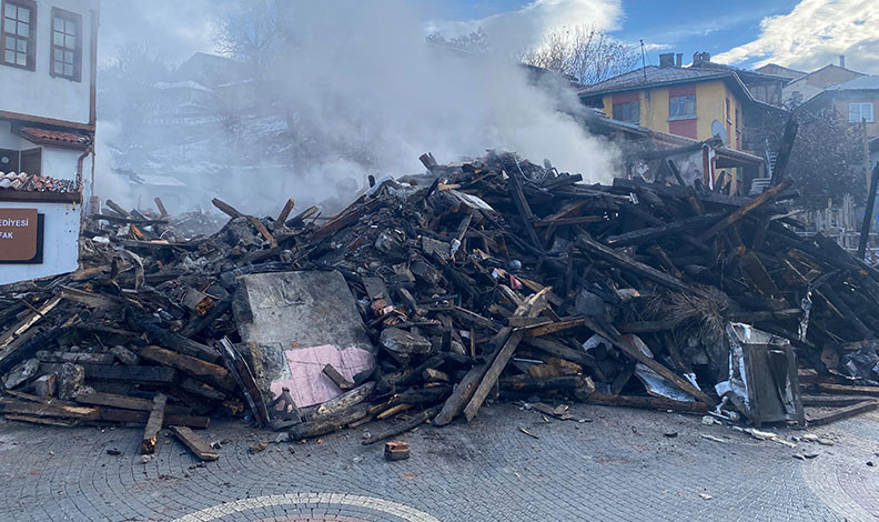 Yangın sonrası küle dönen konaktan geriye sadece moloz yığınları kaldı.