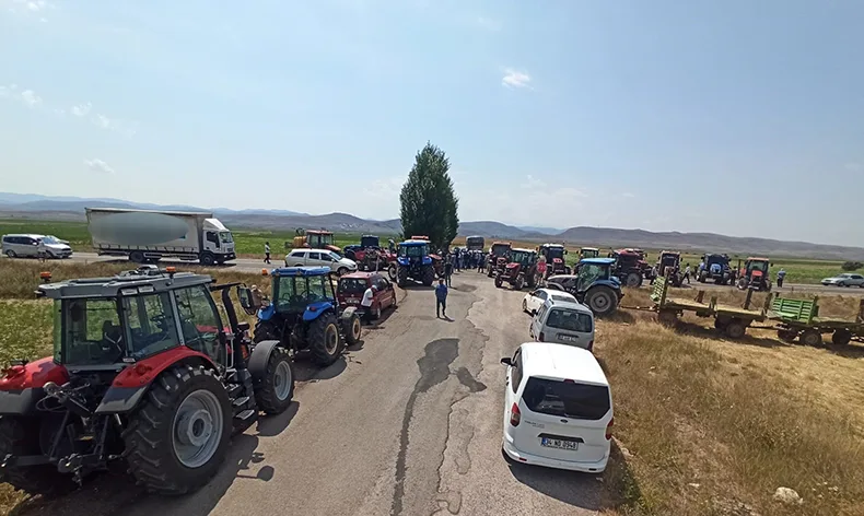 Tarlalarını sulayamayan çiftçiler, traktörlerle yol kapattı