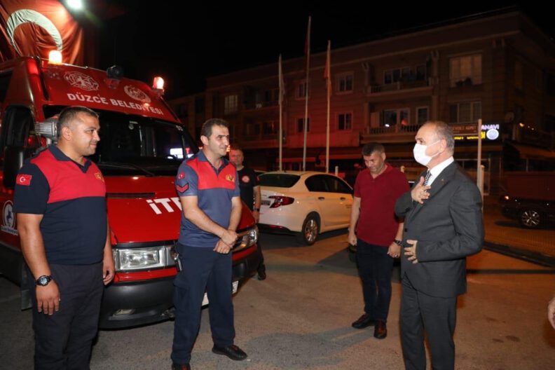 Dr Faruk Özlü, itfaiyecilerin yola çıkmasından önce yaptığı açıklamada, “Devletimiz Kastamonu’da meydana gelen sel ve su taşkınlarına karşı tüm imkanlarını seferber ediyor. Düzce olarak bizde 1 araç, 1 bot, 5 kişilik uzman personelimizi bölgeye gönderiyoruz. Allah ülkemizi her türlü felaketten korusun. Geçmiş olsun” dedi.
