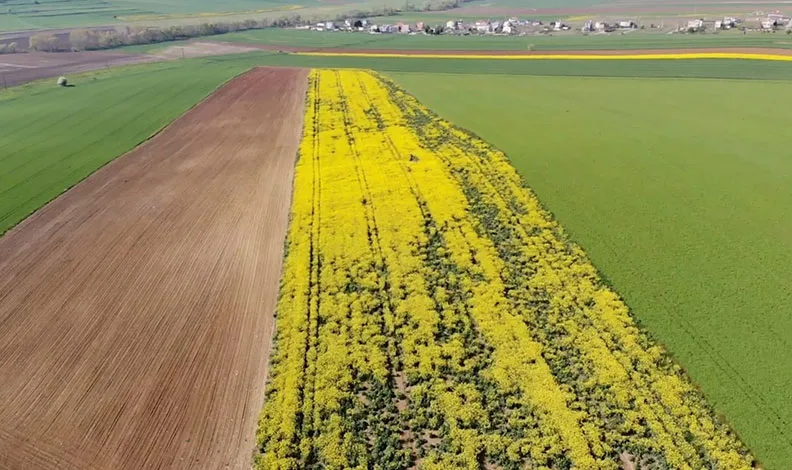 Tekirdağ’da Nisan ayının ortasında açan kanolalar, geniş tarlaları sarıya boyadı. Yeşil buğdaylarla iç içe geçen bu sarı örtü, kahverengi boş topraklarla birleşince gökyüzünden bakıldığında eşsiz bir görüntü oluşturdu. Özellikle Süleymanpaşa, Malkara ve Hayrabolu ilçelerinde yoğunlaşan bu görsel ahenk, doğa tutkunlarını kendine çekti.