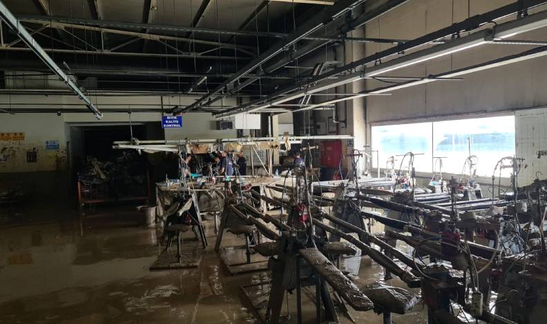 Fabrikanın idari binaları ve üretim sahasını basan taşkın suları nedeniyle makine ve tekstil ürünleri büyük zarar gördü.