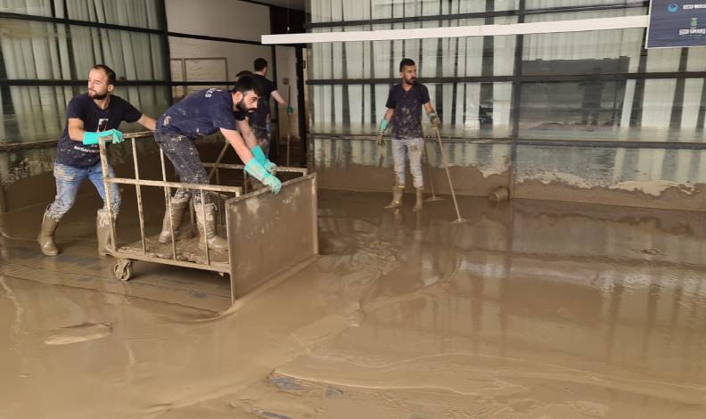 Fabrikanın idari binaları ve üretim sahasını basan taşkın suları nedeniyle makine ve tekstil ürünleri büyük zarar gördü.