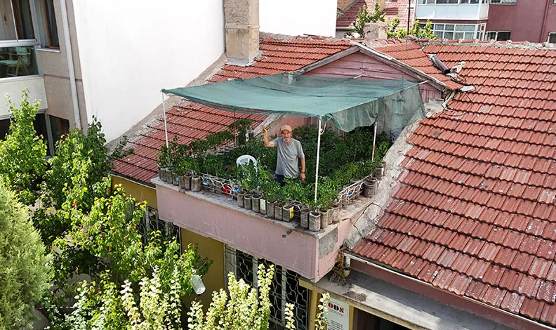 Terastaki bahçesi hakkında konuşan Salim Pektaş, “Burası iş yerimiz. Yazın işlerimiz yoğun olmadığı için kendimize bir meşgale bulduk. Ürettikçe de tadını aldık. Kışlık domates, biber, fasulye, patlıcan gibi ürünlerimizin yüzde 90’ını burada yetiştiriyoruz. Domatesimizi, biberimizi, fasulyemizi, her şeyi buradan alıyoruz. Beş senedir bu işi yapıyorum, ama son üç yıldır çatıda, terasta yapıyoruz. Daha önce arka bahçede yetiştiriyorduk. Burası olmasaydı, yazın herhalde kafayı yerdik. Çünkü yazın 3-4 ay neredeyse hiç işimiz olmuyor” dedi.