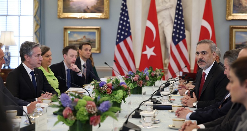 Toplantı sonrası yapılan açıklamada İsveç’in NATO müttefiki olmasının memnuniyetle karşılandığı ifade edilerek, “Bakan Fidan ve Bakan Blinken, Vaşington’da yapılacak 75’inci NATO Zirvesi öncesinde, mevcut tehditler ve zorluklar karşısında NATO içindeki koordinasyon ve dayanışmayı güçlendirmenin yollarını ele almışlardır. İki Bakan, Müttefikler olarak kolektif savunmaya ve NATO’nun Açık Kapı Politikasına olan köklü bağlılıklarını bir kez daha teyit etmiştir. NATO’nun en büyük iki silahlı kuvveti olarak her iki taraf da taahhütlerin yanı sıra kabiliyetleri geliştirmek, birlikte çalışabilirliği sağlamak ve kolektif güvenliğin gücünü arttırmak için yeniden tesis edilen iki yönlü savunma ticareti ilişkisinin önemini yinelemiştir. İki Bakan, İsveç’in 32’nci NATO müttefiki olarak teşkilata katılımını ve bu katılımın İttifakı ve Avrupa-Atlantik güvenliğini güçlendirecek olmasını memnuniyetle karşılamıştır” denildi.