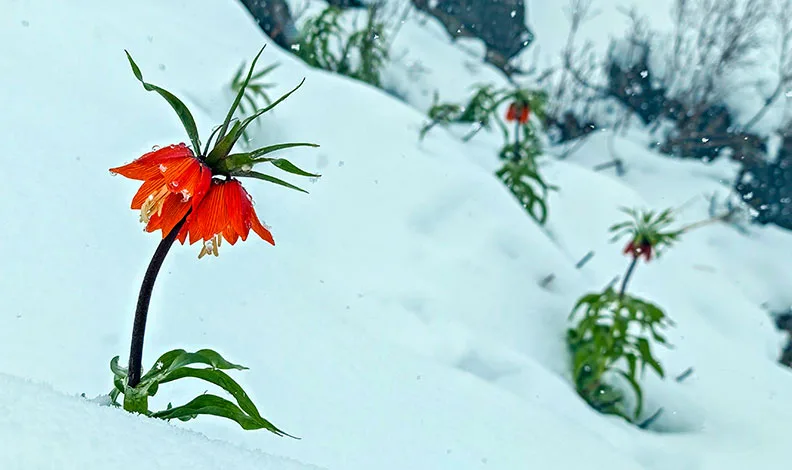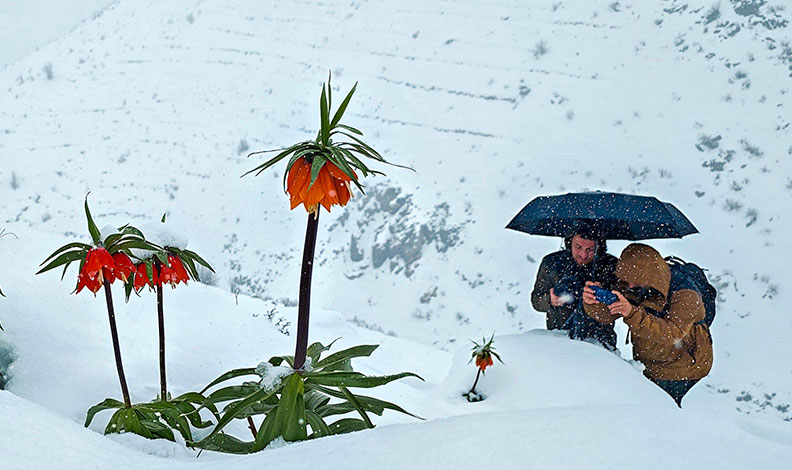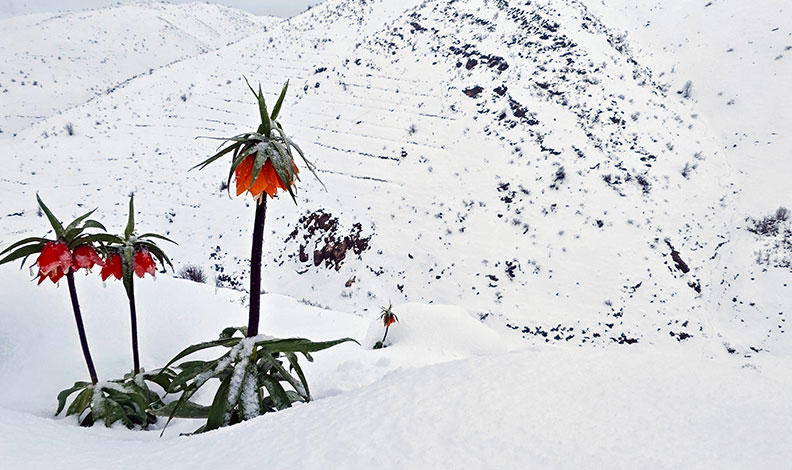 Baharın gelişiyle açan kırmızı ters laleler, nisan ayı ortasında sürpriz bir şekilde yağan kar örtüsünün altında kaldı. Doğada nadir rastlanan bu olay ortaya seyri güzel manzaralar çıkardı. Yeni açan ve boy veren kırmızı ters lalelerin bembeyaz kar örtüsüyle ortaya çıkan eşsiz görüntüleri doğa fotoğrafçıları tarafından kayıt altına alındı.