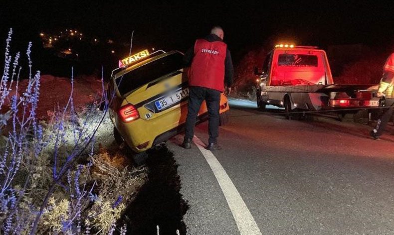 İhbar üzerine olay yerine polis, sağlık ve 110 AKS ekipleri yönlendirildi. Adrese gelen 110 AKS ekipleri, taksinin uçurumdan yuvarlanmaması için aracın lastiklerini halat yardımı ile bağlayarak önlem aldı. Yaklaşık 20 metrelik şarampole uçmaktan şans eseri kurtulan aile, itfaiye ekiplerince araç içerisinden çıkarıldı. Olayda herhangi bir yaralanma olmazken, taksi ise bulunduğu yerden çekici vasıtasıyla çıkarıldı.