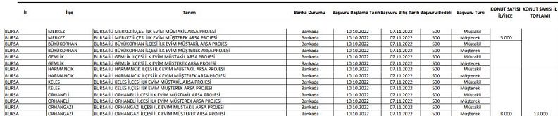 İstanbul’daki arsalar merkezde yer alırken, Bursa’daki arsa projeleri için belirtilen yerler merkez ilçe başta olmak üzere, Büyükorhan, Gemlik, Harmancık, Keles, Orhaneli ve Orhangazi ilçelerinde bulunuyor.