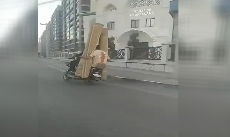 Bursa’nın merkez Yenişehir ilçesinde bir motosiklet sürücüsü arkasına aldığı arkadaşına halı taşıttı. Ne kask ne de başka bir önlem alan ikilinin trafikteki tehlikeli yolcuğu vatandaşların tepkisine neden olurken, başka bir yolculuk ise Osmangazi ilçesinde meydana geldi. Düğün konvoyuna katılan bir aracın arka camından kendini sarkıtan vatandaş hızla seyir eden araçta yürekleri ağza getirirken, yine aynı ilçede, 3 kişi motosikletle seyir edip kazaya davetiye çıkardı. O anlar kameraya anbean yansıdı.