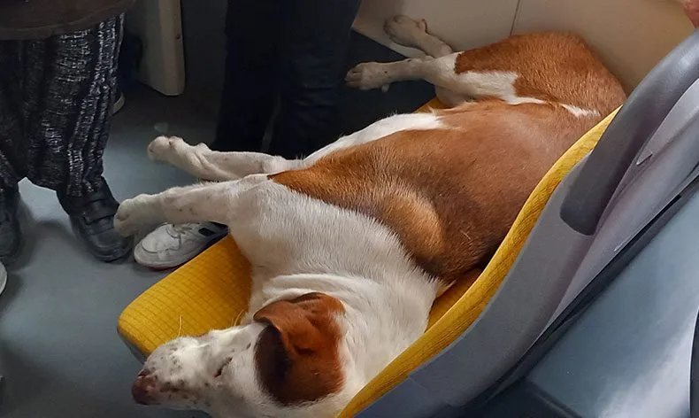 SSK – Otogar tramvay hattında sefer yapan tramvaya, soğuktan korunmak için SSK durağında sevimli köpek bindi ve iki kişilik koltuğa oturdu. Akabinde üşüdüğünden iki kişilik koltuğun üzerinde mışıl mışıl uyudu. Tramvaydaki yolcular yer olmadığından ayakta gittikleri halde, uyuyan sevimli köpeği rahatsız etmediler ve dokunarak sevdiler. Yolcular: ‘’Yeter ki sevimli köpek, soğukta üşümesin ve tramvayda uyusun, dinlensin. Biz ayakta gitmeye razıyız’’ dediler. Sevimli köpek de uyumaya ve seyahat etmeye devam etti. Yolcularında, sevimli köpek ilgi odağı oldu ve yolcular dokunarak sevdiler.