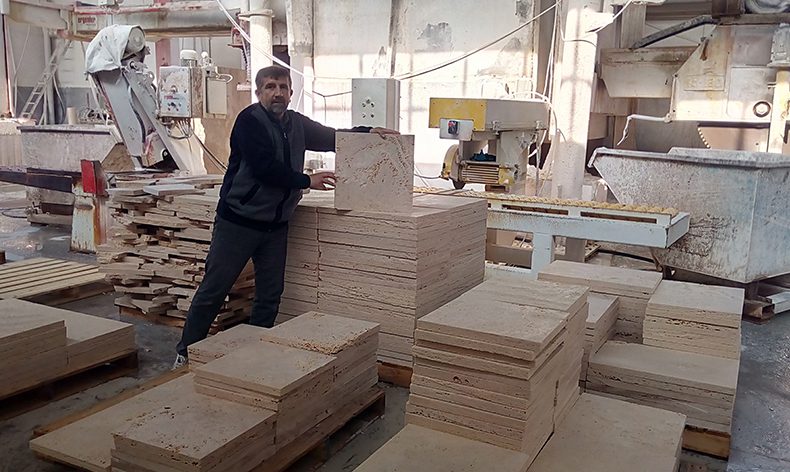 Denizli’de 20 yıl traverten ocaklarında maden mühendisi olarak çalıştıktan sonra 6 yıl önce kendi fabrikasını kuran Süleyman Burkay, traverten blokları kesilirken başında bekliyor. Kesilen traverten blokları içinden çıkan yengeç, yaprak ve kemik fosillerini deposunda saklayan Burkay’ın elinde 30’ a yakın fosil bulunuyor. Burkay’ın koruma altına aldığı fosiller Fransa’dan gelen ilim insanlarının da ilgisini çekti. Fabrikaya gelerek inceleme yapan ilim insanları fosillere numara verip kayıt altına aldı. Fabrikasında Honaz ilçesine bağlı Kaklık Mahallesi sınırları içinde bulunan Ballık Boğazı Mevkii’nden çıkartılan traverten bloklarını kesip ebatladıklarını anlatan Maden Mühendisi Burkay, yılda 15 bin tona yakın traverten kesimi yaptıklarına dikkat çekti.
