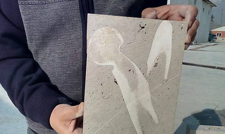 Bir fosilin oluşması için milyonlarca yılın geçmesi gerektiğini belirten Süleyman Burkay, “2003 yılından beri ocaklarda maden mühendisi olarak çalışmaktayım. 20 yıl mühendis olarak çalıştıktan sonra 2017 yılında fabrikayı kiralayıp kendi bünyemde taşlarla uğraşmaya başladım. O zamandan beri kestiğimiz taşlarda bazı fosillere rastladık. Bulduğunuz taşları kendi bünyemizde biriktirip sakladık. Daha önce maden mühendisi çalıştığım için bu tür fosillerin önemini anlayabiliyorum. Milyonlarca yıllık fosillere karşılaştık. Daha çok yengeç ve hayvan kemik parçaları gördük. Bu kemik parçaları için Fransa’dan 2-3 öğretim görevlisi gelip kontrol ettiler ve bazılarına numara verdi. Bunların ne olduğunu anlamak için kayıt altına alıp gittiler. Bunları saklamaya devam edeceğim” dedi.