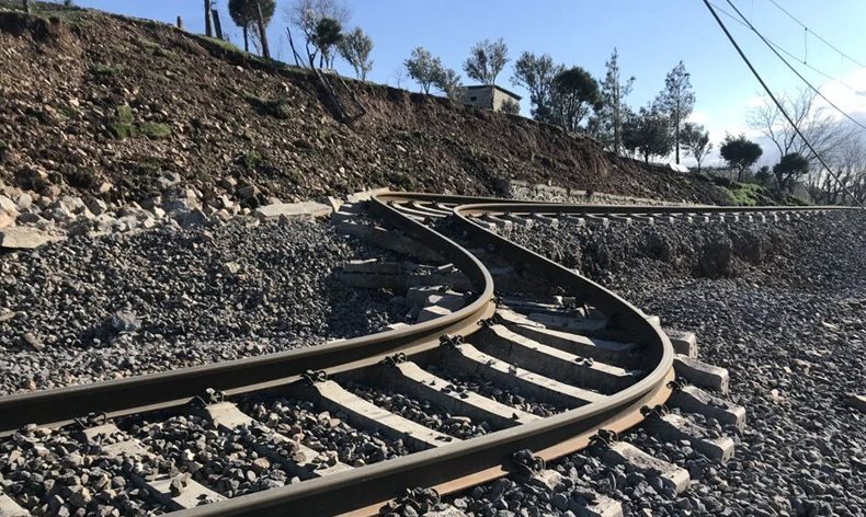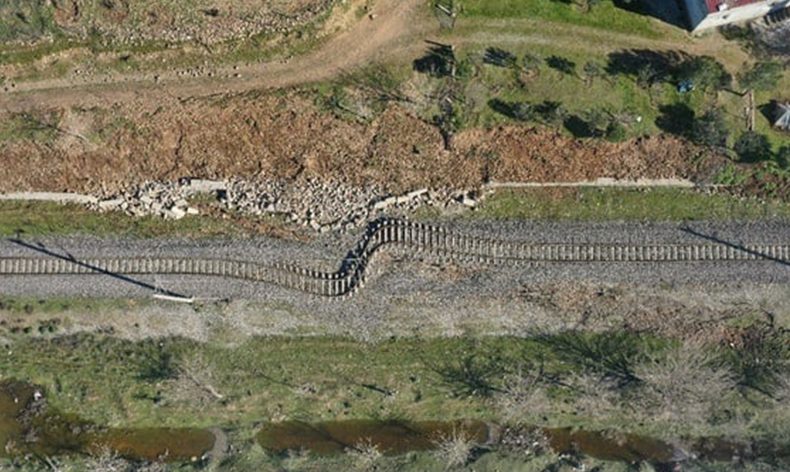 Aktif fay hattı üzerinde yer alan tren rayları kullanılamaz hale geldi.