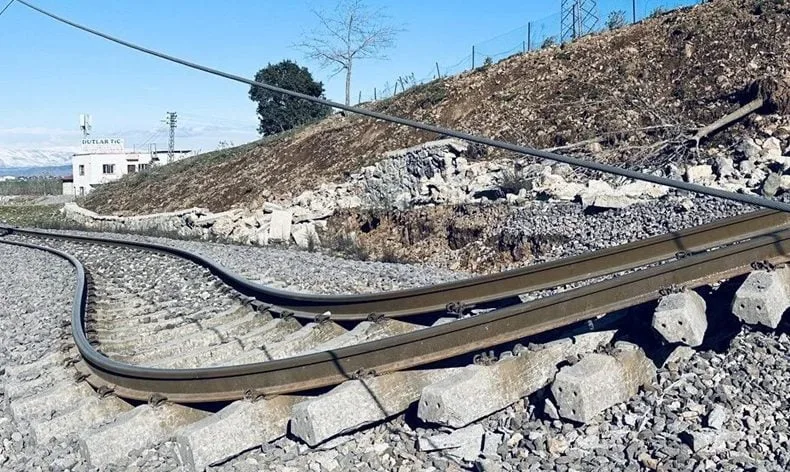 Kahramanmaraş’ta meydana gelen 2 depremde demir yolu da zarar gördü. Depremin etkisiyle tren rayları yerinden oynayıp büküldü. Türkoğlu ilçesi Şekeroba Mahallesi’nden geçen tren rayları, deprem sırasında bükülüp yana kaydı.