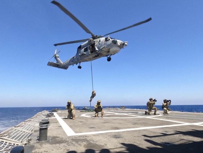 TÜRK SİLAHLI KUVVETLERİ (TSK) TÜRK DENİZ GÖREV GRUBU GÖREVİ ÇERÇEVESİNDE LİBYA AÇIKLARINDA EĞİTİM GERÇEKLEŞTİRDİ. (İHA/ANKARA-İHA) Türk Silahlı Kuvvetleri (TSK) Türk Deniz Görev Grubu görevi çerçevesinde Libya açıklarında eğitim gerçekleştirdi.