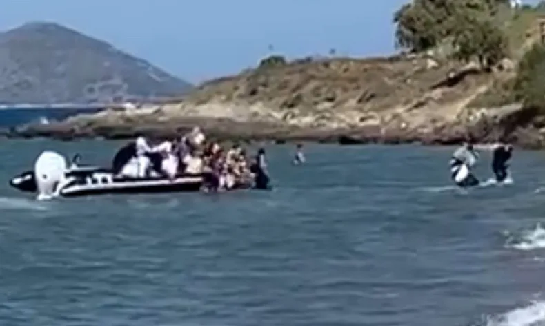 Sahil Güvenlik ekiplerinin müdahalesi ile 30 kaçak göçmen kıskıvrak yakalandı. Olay, sahilde denize giren turistlerin şaşkın bakışları arasında gerçekleşirken, operasyonun her anı çevredeki vatandaşlar tarafından cep telefonlarıyla kaydedildi. Yakalanan göçmenler, işlemleri yapılmak üzere ilgili birimlere teslim edildi.
