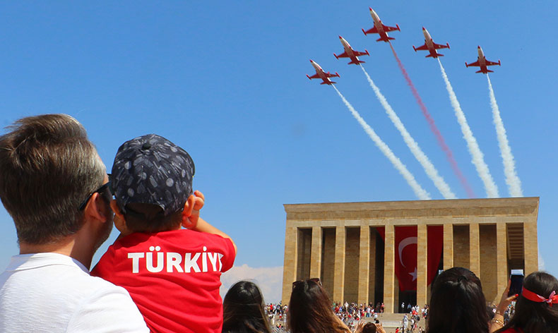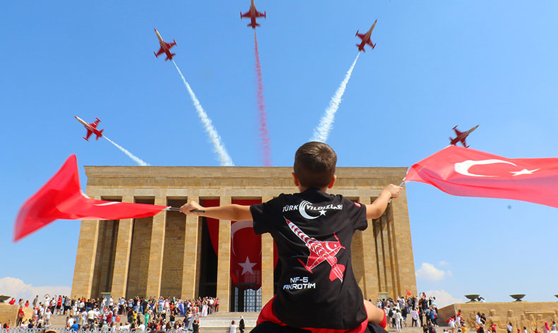30 Ağustos Zafer Bayramı yurdun dört bir yanında coşkuyla kutlanmaya devam ediyor. Anıtkabir ise her yıl olduğu gibi bu yılda kutlamaların merkezi oldu. Sabah saatlerinde devlet erkanı tarafından gerçekleştirilen resmi ziyaretlerin ardından vatandaşların ziyaretine açılan Anıtkabir yine doldu taştı. Türk Hava Kuvvetleri bünyesinde bulunan Türk Yıldızları akrobasi takımı da 30 Ağustos Zafer Bayramı çerçevesinde Anıtkabir semalarında saygı uçuşu gerçekleştirdi.