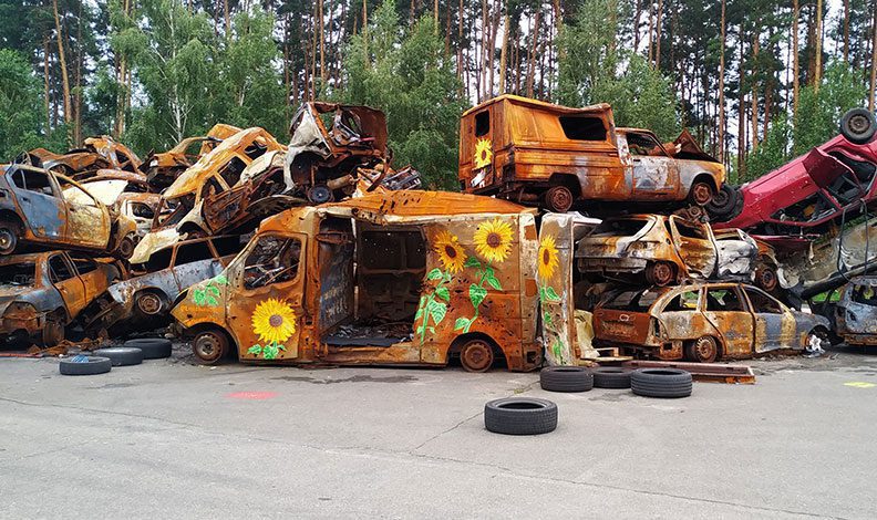 Rusya-Ukrayna savaşı devam ederken, Ukrayna ordusu tarafından ülkenin Irpin şehrinde Rus tanklarının ilerlemesini durdurmak için yıkılan bir köprüden çekilen araçlar, ABD’li ve Ukraynalı sanatçıların tuvali oldu. Sanatçılar hurdaya dönen araçlara çizdikleri ayçiçeği çalışmalarının dijital görüntülerini NFT olarak satışa sunmayı planladıklarını ve elde edilecek gelirin yeni projeler için kullanılacağını belirtti.