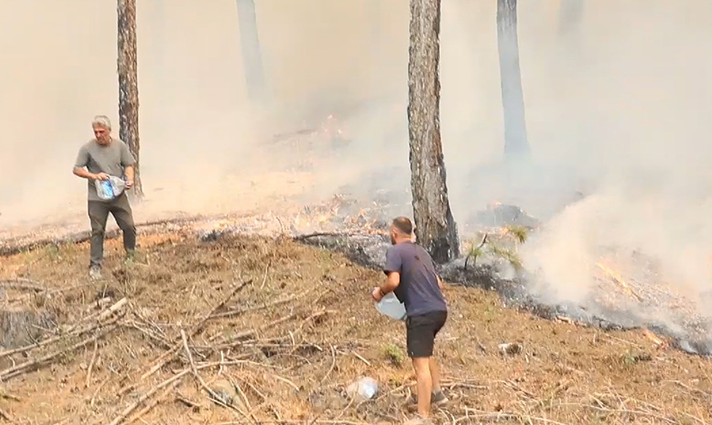 Ula’nın Yeniköy Mahallesi sırtlarındaki ormanlık alanda çıkan ve şiddetli rüzgarın da etkisi ile büyüyen yangına bölge sakinleri, ekiplere yardımcı olabilmek adına evlerinde bulunan su damacanaları, kazma ve küreklerle yangın söndürme çabalarına katıldı. Yangın alanında canla başla çalışan vatandaşlar, hem yangınla mücadele eden ekiplere moral vermeye çalışırken, hem de söndürme çalışmalarına doğrudan katkı sağlıyor.