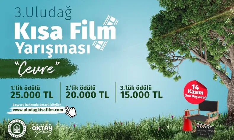 Yıldırım Belediyesi’nin geleneksel hale getirdiği 3. Uludağ Kısa Film Yarışması’nın başvuruları başladı. Bu yıl, çevre sorunlarına karşı farkındalık oluşturmak amacıyla ‘çevre’ ana temasıyla düzenlenecek yarışmanın başvuruları 14 Kasım 2023’e kadar devam edecek. Jüri başkanlığını Derviş Zaim’in yapacağı festivalin diğer jüri üyeliklerini ise Osman Nail Doğan, Nevzat Çalıkuşuve Ali Sait Liman yapacak.