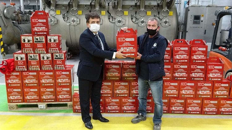 Uludağ Organize Sanayi Bölgesi’nde faaliyet gösteren fabrika sahipleri, Türkiye’ye örnek olacak bir projeye destek verdi. Korona virüs salgını sebebiyle istihdamın korunması ve işletmelerin ayakta kalması için çalışmalarına her gün bir yenisini ekleyen Uludağ Organize Bölgesi, işverenlerin yanı sıra çalışanlar için de örnek projelere imza atıyor. ‘Yüzyıllık vefa, yüzyıllık farkındalık’ projesini hayata geçiren Uludağ OSB, Ramazan ayı öncesi işverenlerin çalışanlara erzak ve temizlik malzemesi yardımına öncülük etti. Özenle hazırlanan kutuları çalışanlara takdim eden Uludağ OSB Başkanı Yunus Aydın, “Biz Bize Yeteriz Türkiyem milli dayanışma kampanyası çerçevesinde devleti ve milletiyle el ele vererek, gerçekleşen salgın hastalıkla mücadeleye bizler de katkı sunmak istedik. Üretimin devamlılığı adına büyük önem taşıyan, ailemizin bir parçası olarak gördüğümüz, çalışma arkadaşlarımızla medeniyetimizin ve kültürümüzün bir yansıması olarak yardımlaşma, dayanışma ve paylaşma içerisinde olma kararlılığımızı gösteren bir projeyi başlattık. Bu proje ile sanayicilerimiz öncelikle kendi işletmelerinde çalışanlar için erzak desteği başlattı. Milli Mücadele’yi Cumhuriyet’le taçlandıran ecdadımızın inanç, azim ve vatan sevgisiyle, ‘Biz Bize Yeteriz Türkiyem’ diyoruz. Türkiye Büyük Millet Meclisimizin açılışının 100. yıl dönümü olan 23 Nisan günü akşam 21.00’da evlerinde İstiklal Marşını okuyacak olan çalışma arkadaşlarımıza Türk bayrağı hediye ediyoruz” diye konuştu.
