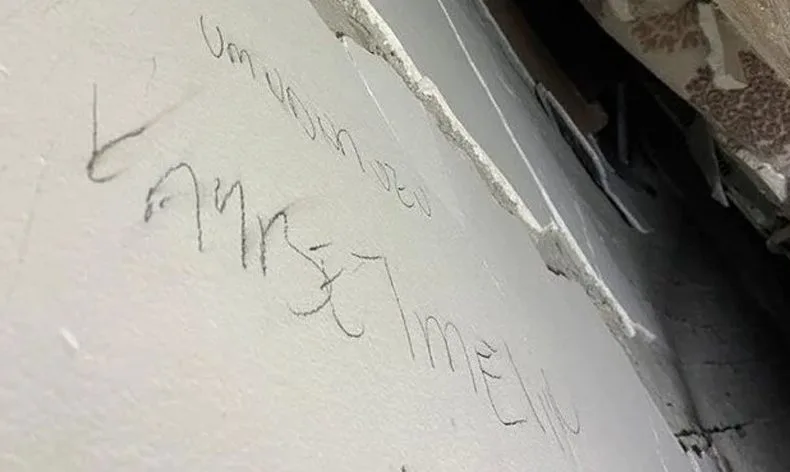 Kahramanmaraş’ın Dulkadiroğlu ilçesinde yıkılan apartmandan 64 saat sonra kurtarılan 24 yaşındaki genç, duvara “Umudunuzu kaybetmeyin” diye yazdığı ortaya çıktı.