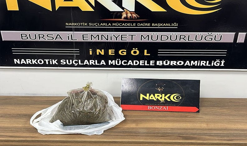 Bursa İl Emniyet Müdürlüğü Narkotik Şube Müdürlüğü İnegöl Büro Amirliği ekipleri şüphelendikleri 2 şahsı takibe aldı. Ekiplerce yakalanan 2 kişinin üst araması yapıldı. Abdullah T.(18) ve Cemil A.(20) üzerinde yapılan aramada 200 gram bonzai ile uyuşturucu gelirinden elde edildiği düşünülen 100 bin TL nakit para ele geçirildi.