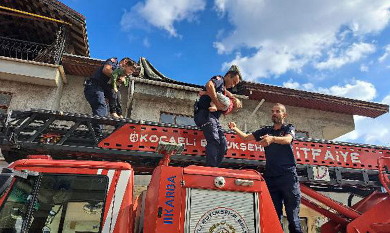 Yangında mahsur kaldılar, itfaiye kurtardı