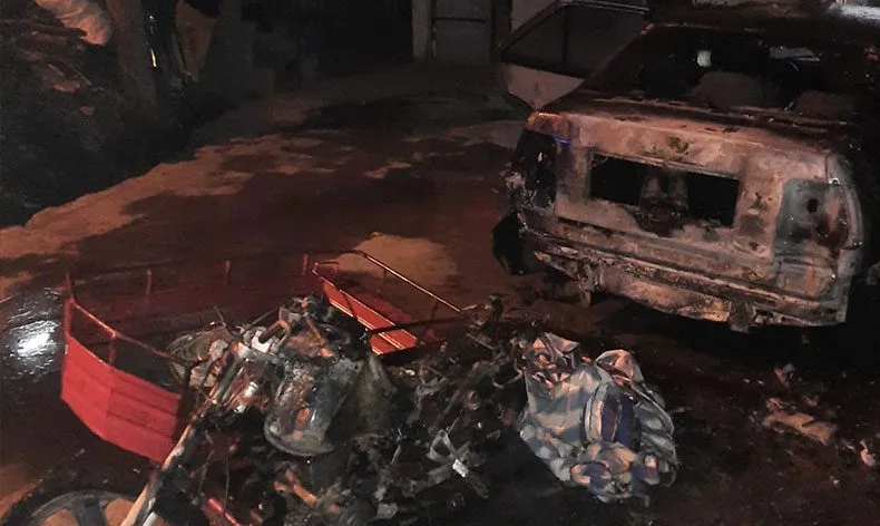 Yangında otomobil ve motosiklet küle döndü