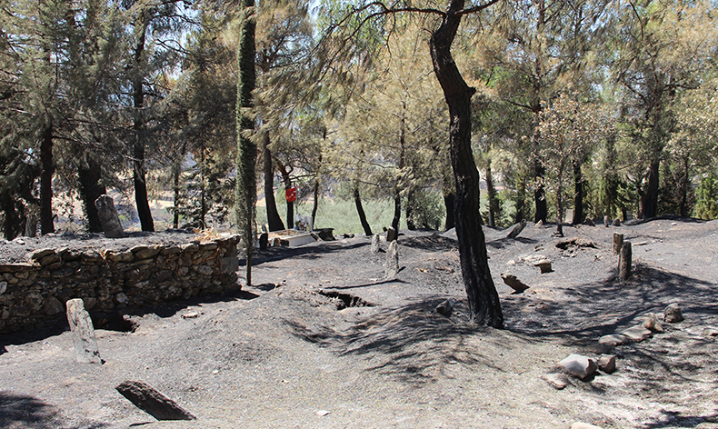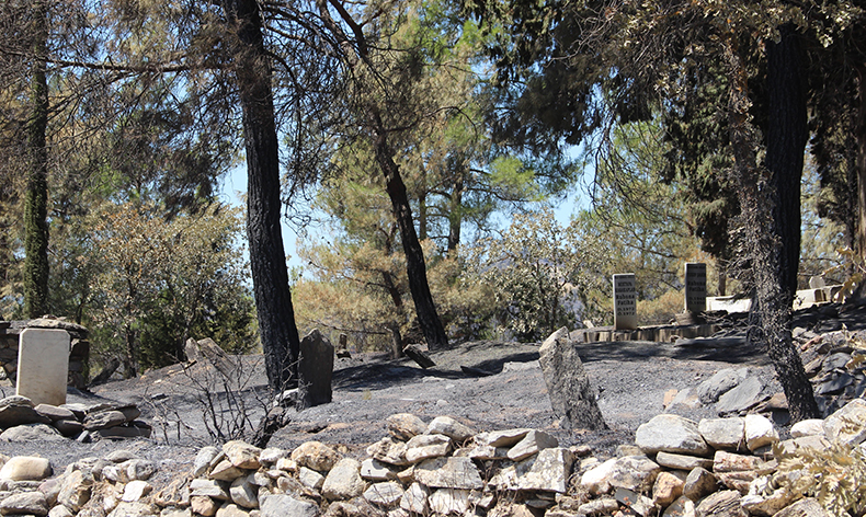 Manisa’nın Gördes ilçesinde 14 Ağustos’ta başlayan ve Salihli ilçesine kadar devam eden orman yangını çok sayıda ekibin yoğun çabalarıyla 6’ncı gününde kontrol altına alınarak soğutma çalışmalarına başlandı. Orman yangınında tamamen yanan Gördes’in Karayakup köyündeki acı manzara yürekleri dağlarken köyün mezarlığı da yangının ortasında kaldı. Alevlerin zarar veremediği tek mezar ise 2010 yılında şehit olan Piyade Er Halil İbrahim Ertaş’ın kabri ve kabrinin başındaki Türk bayrağı oldu. Şehidin köyde yaşayan ailesinin ise yangından sonra İzmir’de yaşayan kızlarının yanına gittikleri öğrenildi.