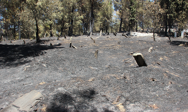 Yangında şehit mezarı yanmadı