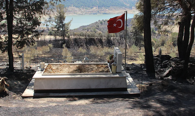 Manisa’nın Gördes ilçesinde 14 Ağustos’ta başlayan ve Salihli ilçesine kadar devam eden orman yangını çok sayıda ekibin yoğun çabalarıyla 6’ncı gününde kontrol altına alınarak soğutma çalışmalarına başlandı. Orman yangınında tamamen yanan Gördes’in Karayakup köyündeki acı manzara yürekleri dağlarken köyün mezarlığı da yangının ortasında kaldı. Alevlerin zarar veremediği tek mezar ise 2010 yılında şehit olan Piyade Er Halil İbrahim Ertaş’ın kabri ve kabrinin başındaki Türk bayrağı oldu. Şehidin köyde yaşayan ailesinin ise yangından sonra İzmir’de yaşayan kızlarının yanına gittikleri öğrenildi.